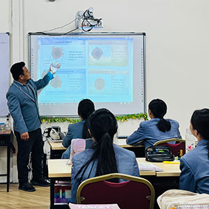 An interactive smart board is available in every classroom of Hua Xia to improve the student’s learning experiences.